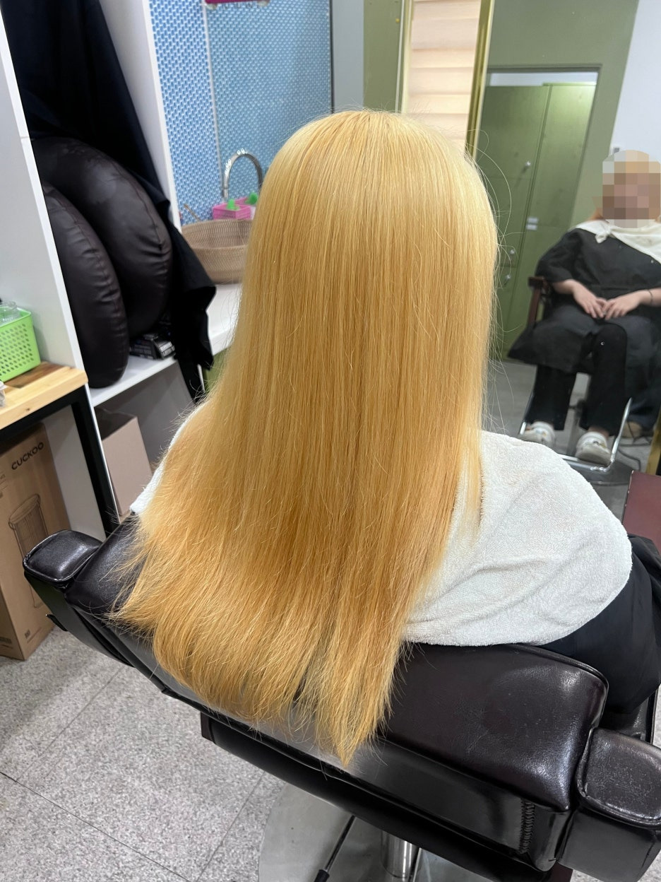 탈색 후 본 염색 들어가기 전 상태입니다.